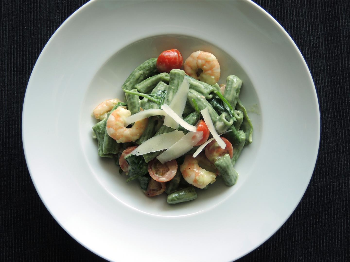 Ich hatte mich für Pasta con Gamberetti e Spinaci entschieden, und gleich zuhause nachgekocht. Je nachdem welche Nudelsorte man verwendet, ist das Essen sehr schnell fertig. Es gelingt auch super mit frischen Tagliatelle aus dem Kühlregal, die nur wenige Minuten Kochzeit haben.