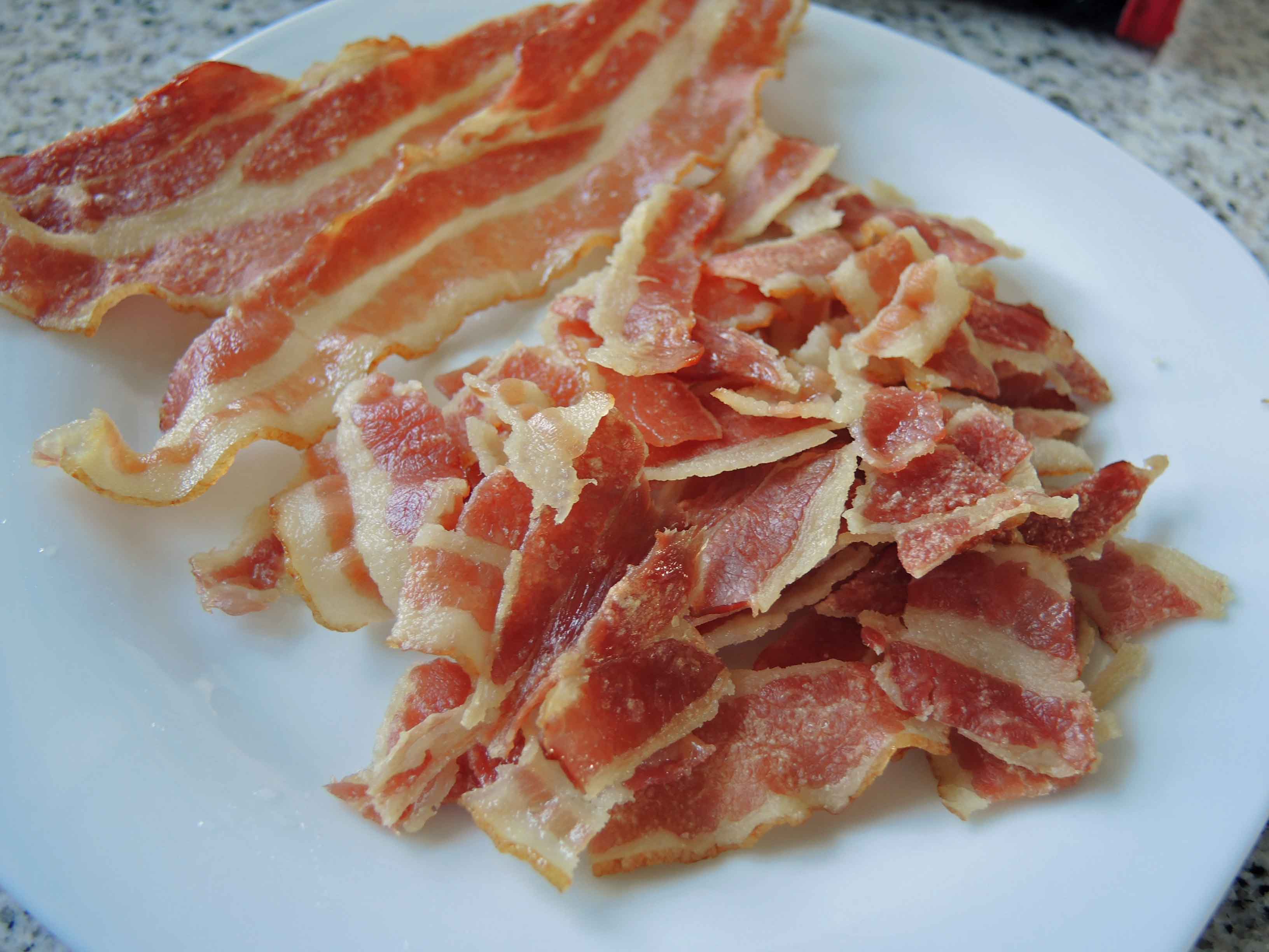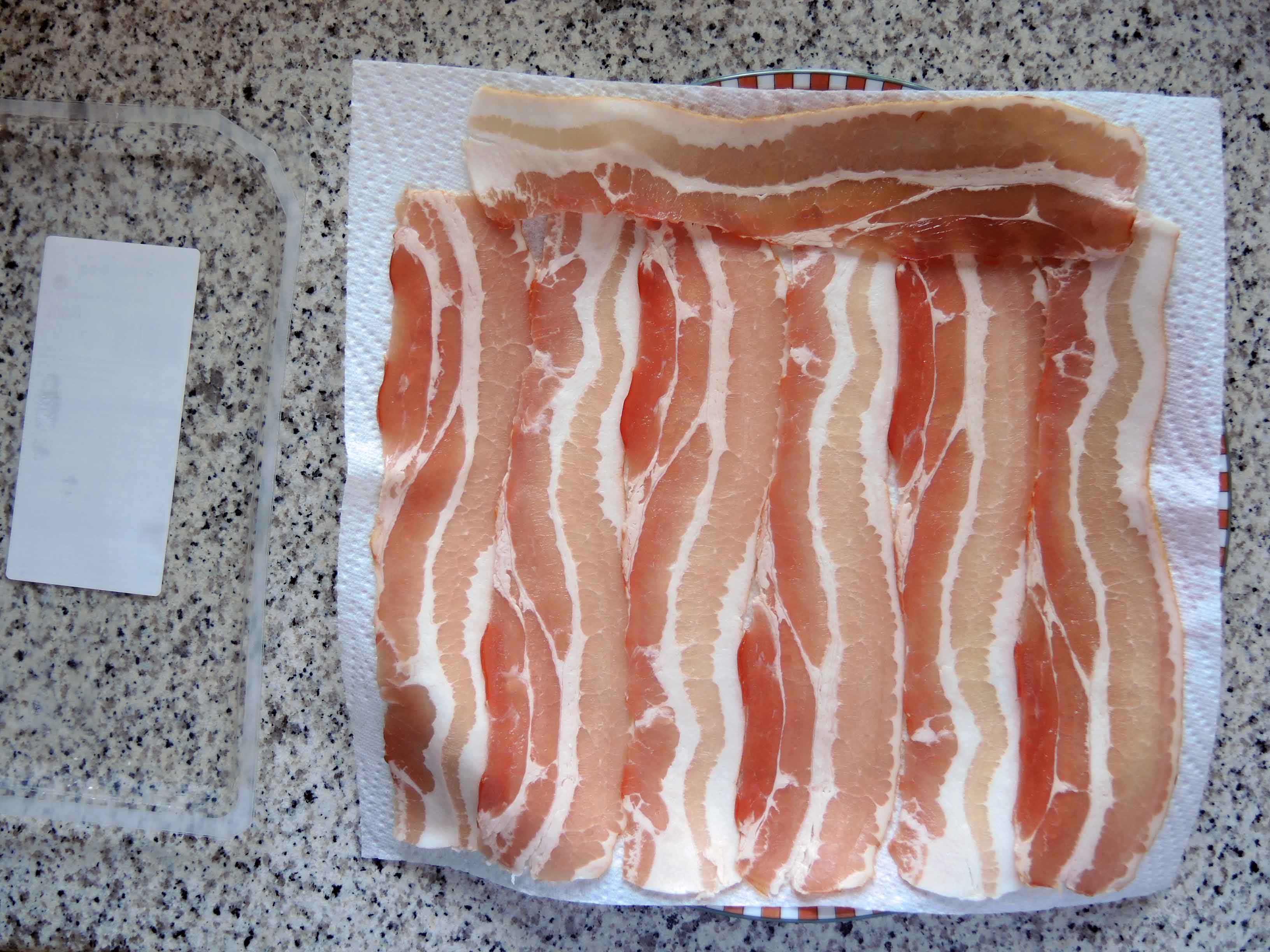 Von 100 g Bacon aus der Packung bekommt man etwa 30 g krossen Bacon!
