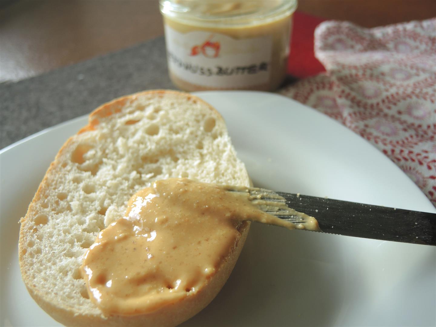 Erdnussbutter weckt bei mir Kindheitserinnerungen, ein lieber Onkel hatte uns mal Erdnussbutter mitgebracht, original amerikanische in einem riesigen Glas, die gab es damals bei uns leider nicht zu kaufen. Früher habe ich die Erdnussbutter auf amerikanische Art am liebsten mit Marmelade gegessen, heute esse ich sie lieber pur oder mit Käse auf einem Brötchen oder Toastbrot. Oder ich koche den schnellen Hähnchen-Erdnuss-Wok, der mit Erdnussbutter zubereitet wird.
