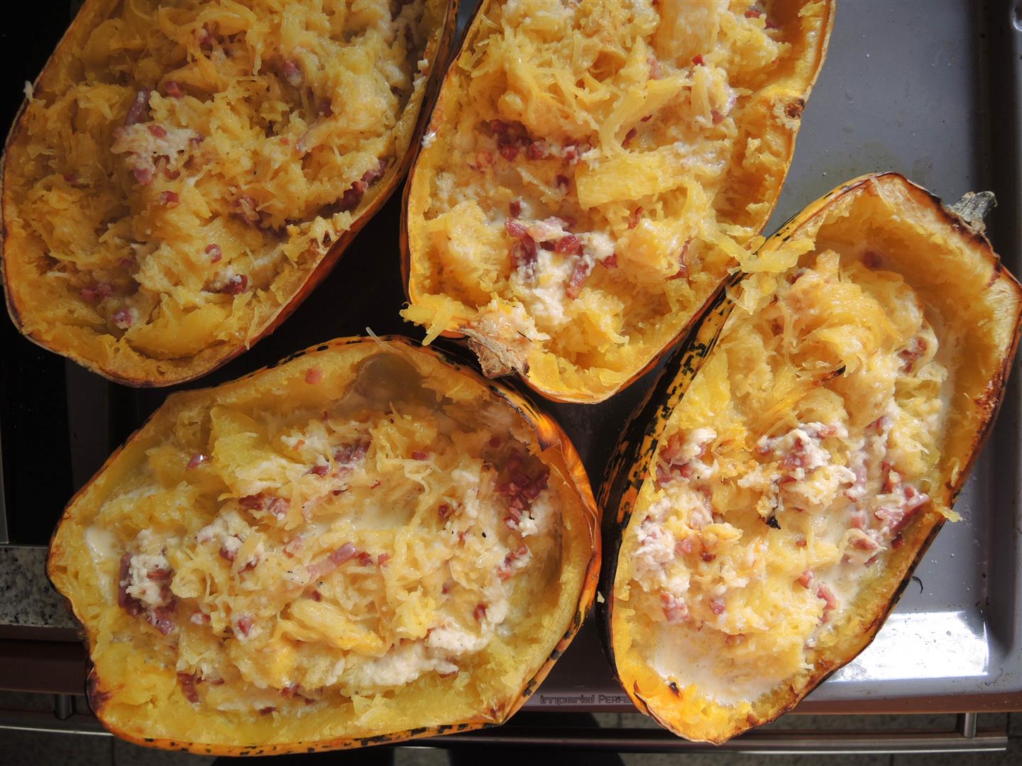 Lauch und Schinkenwürfel in eine flache Auflaufform geben, die vorgegarten Spargelstücke darauf legen und mit der Sahnemischung übergießen.