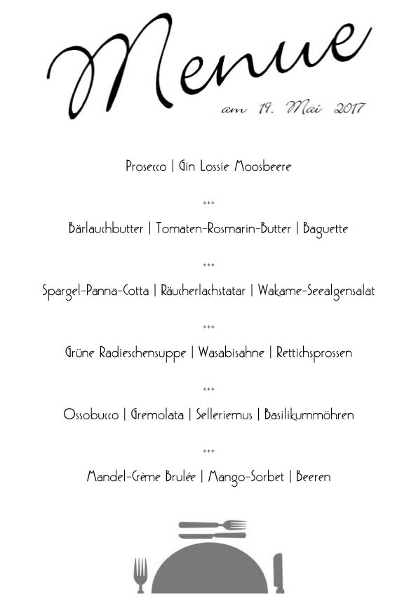 Dieses war nun unser Menü: